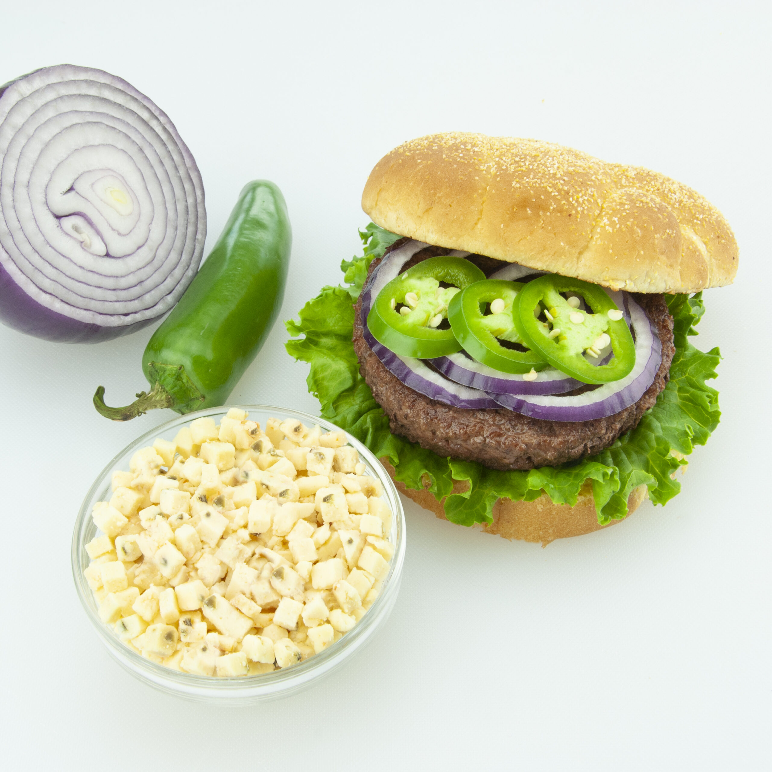 This diced cheese will help you spice up your menu with the perfect blend of flavor and convenience. It has a slightly salty Monterey Jack flavor profile complemented by a hint of mild heat from peppers that will add a kick to any culinary creation. And, because it’s already diced for consistent cut and quality, it’s easy to add to baked bread, stuffed sausages, burgers, and more. Plus, it’s designed to withstand high-heat situations and freeze thaw applications, ensuring that every bite looks and tastes spectacular.