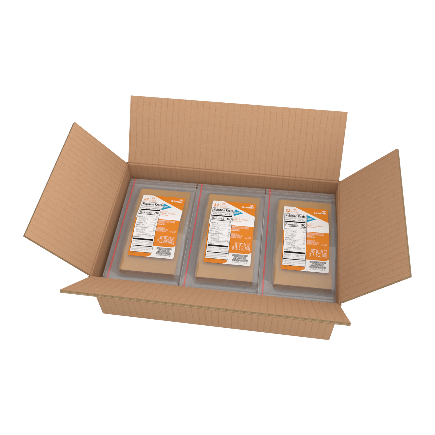 SCHREIBER MILD CHEDDAR SLICES – 6/1.5# 32 SLICES