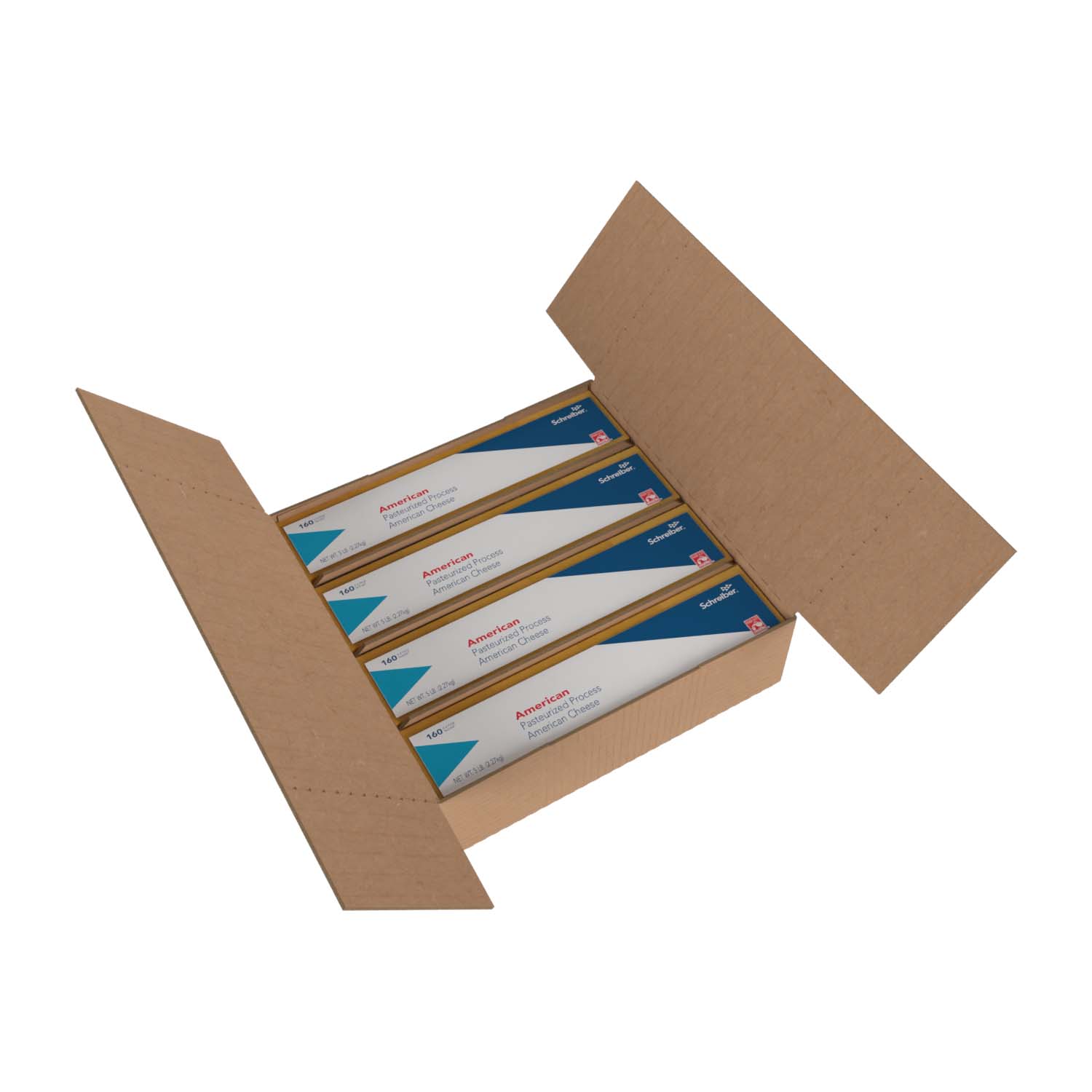 SCHREIBER YELLOW PASTEURIZED PROCESS AMERICAN SLICES – 4/5# FLOW THROUGH WRAPPER 160 SLICES